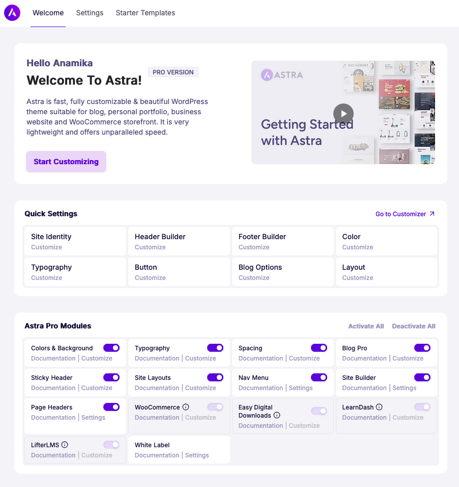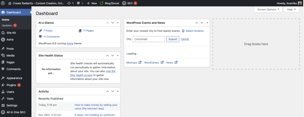 Create Radiantly uses Astra + starter templates. It is clean, simple and I love the layout structure with this blog theme. It has plenty of options to customize and you do not need to know coding!