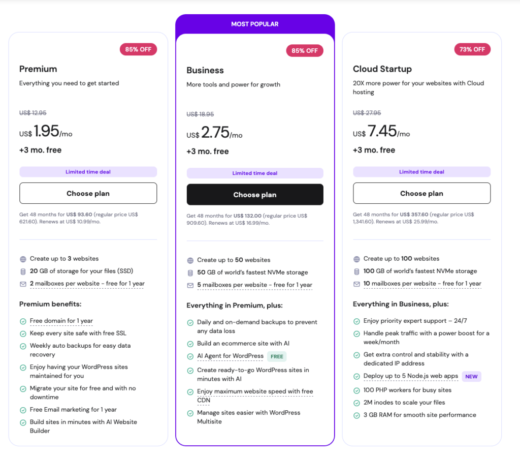 BONUS – It comes with FREE WordPress and lots of free WordPress plugins which is super easy to setup. Hostinger has options for both AI based website setup and WordPress so you don’t have to worry about separately setting up.